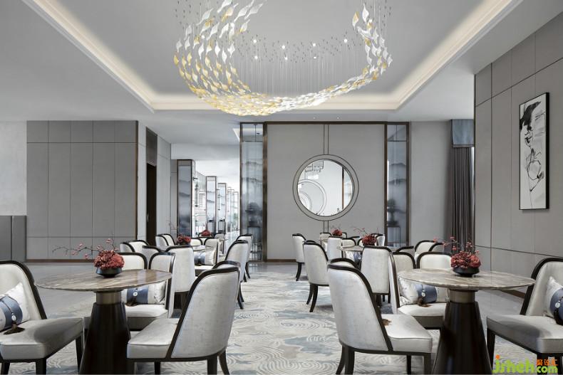 “S形”吊燈以自然為背景,清朗飄逸,有序地排列在空間,呈現(xiàn)出流動(dòng)的優(yōu)雅姿態(tài),極簡(jiǎn)線條、干凈的色彩、形式與用材素雅卻又風(fēng)雅自成,似翻動(dòng)澄澈的水光,靜景與動(dòng)景互相映照,構(gòu)成一幅綺麗的畫面。