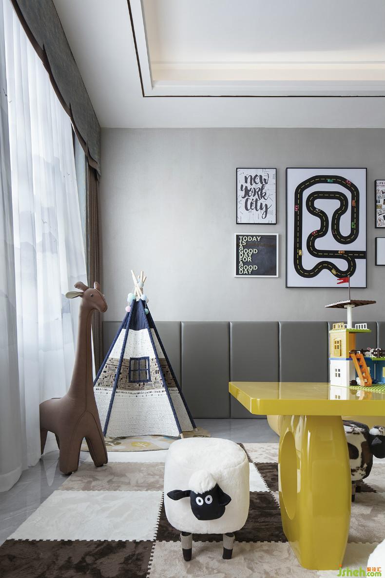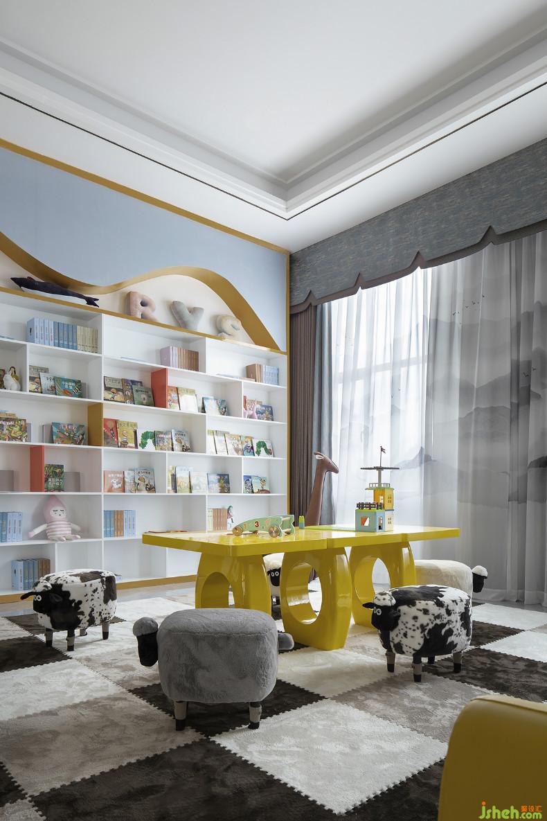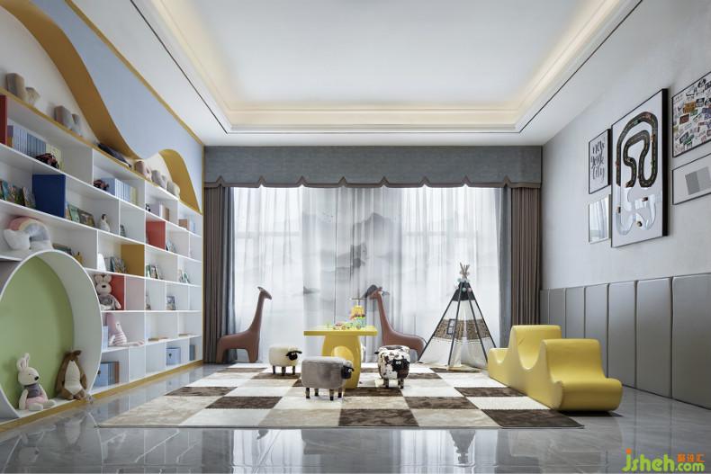 兒童游樂(lè)區(qū)猶如夢(mèng)境中的童話王國(guó),書籍和童趣物品置入,令空間活潑生趣,清新唯美的色彩,應(yīng)和整體的設(shè)計(jì)風(fēng)格,快樂(lè)是兒童永恒的命題,純粹是天性里的基色,而不同創(chuàng)意的趣味則是夢(mèng)想的著色。