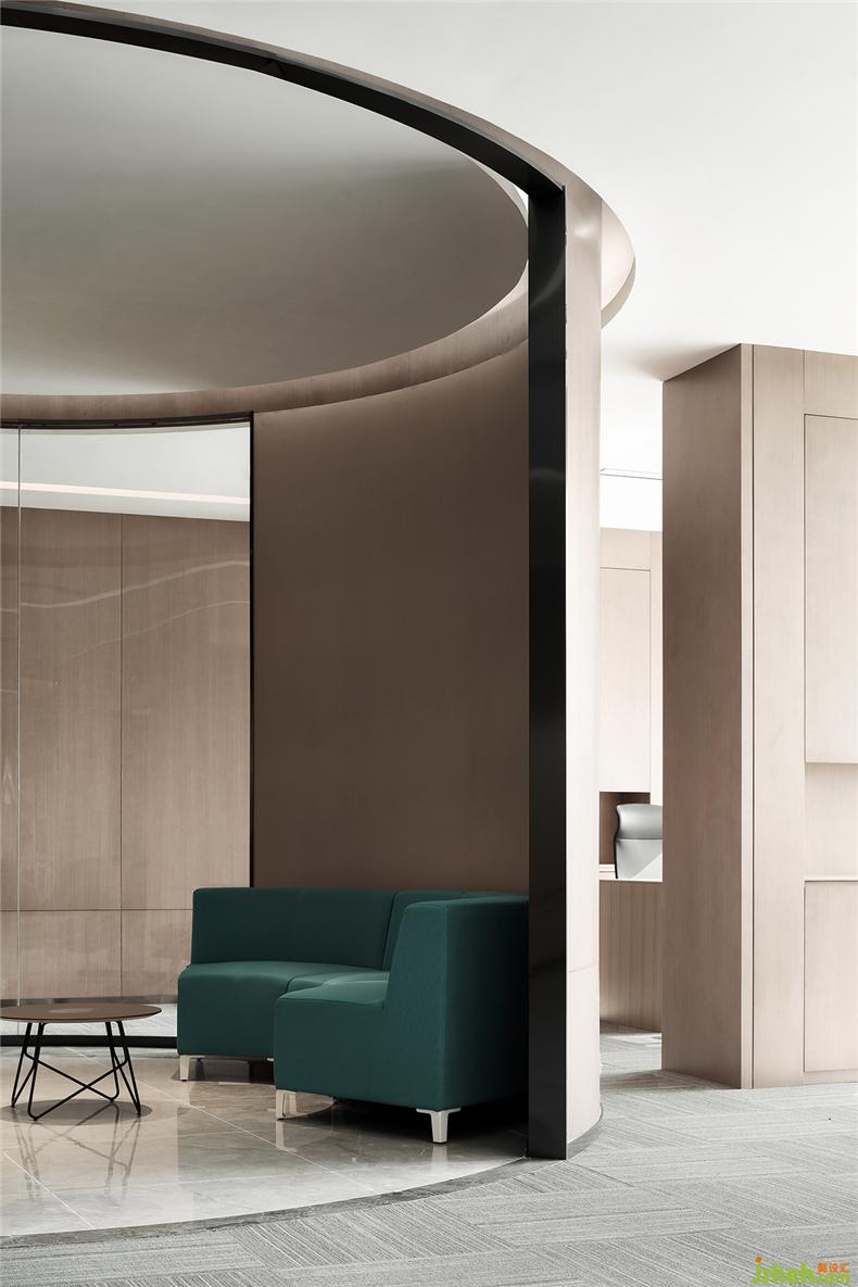 空間呈現(xiàn)一種至簡的流暢,弧形天花在藝術(shù)的塑形下,南寧辦公室設計保持著空間的獨立卻又有開放的視覺。大地色的空間氛圍,將整個空間串聯(lián),讓室內(nèi)更為安靜。