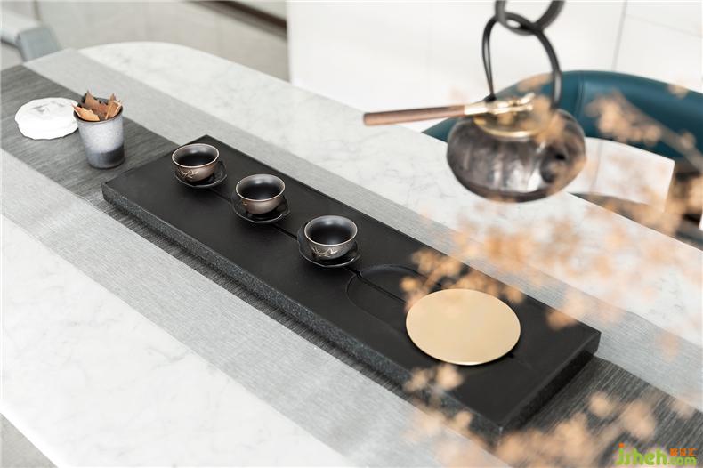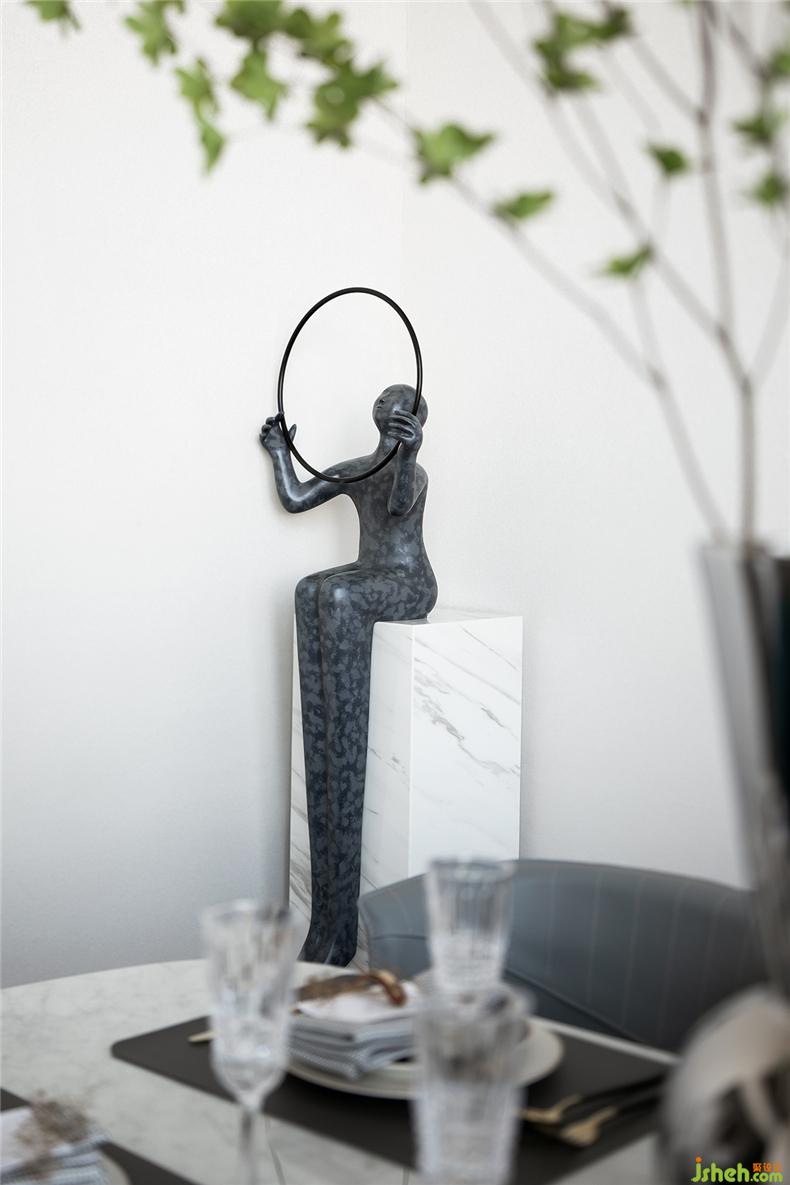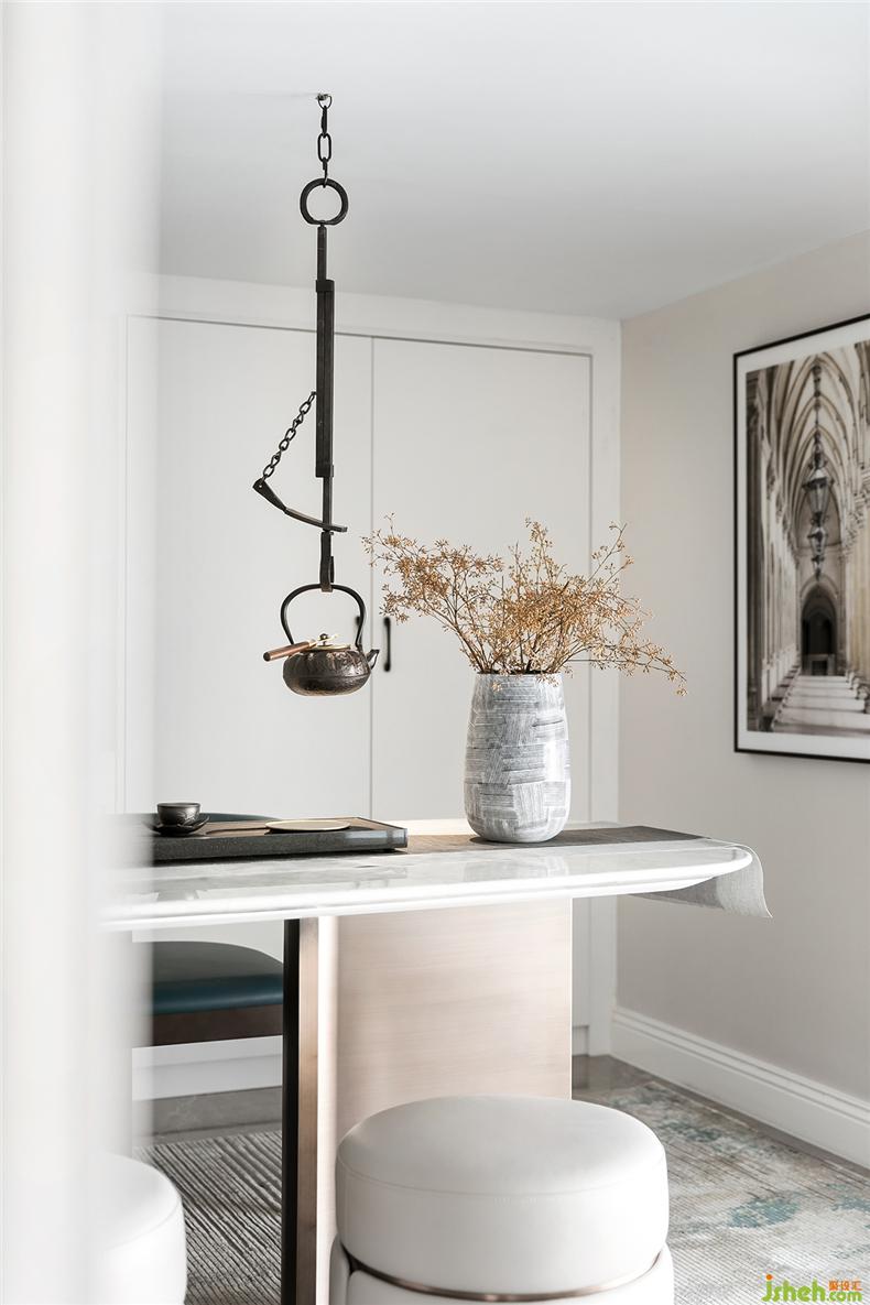 客餐廳為一體的挑高橫廳,光感靈動(dòng),雋永舒怡。陳設(shè)細(xì)節(jié)以藝術(shù)手法渲染出獨(dú)立自由的生活語(yǔ)境,情韻詩(shī)意,表達(dá)出一種在繁華中回歸寧?kù)o的意味,更是主人生活狀態(tài)、氣度胸懷的呈現(xiàn)。