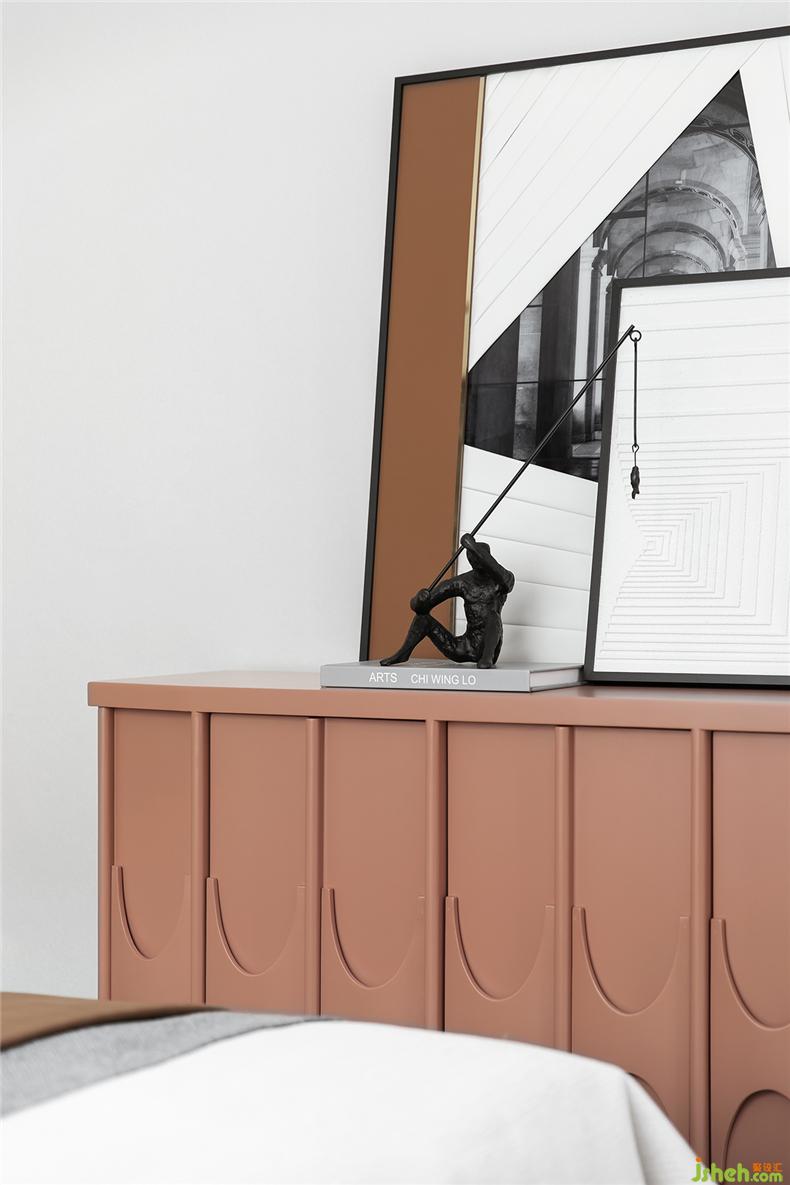 干凈的灰白色營造出恬淡靜雅的氛圍,藝術(shù)在其中表現(xiàn)出素樸之道,現(xiàn)代的線條勾勒出藝術(shù)情調(diào),樣板房設(shè)計(jì)空間中加入了橘色元素,讓空間多了份溫暖和舒適。