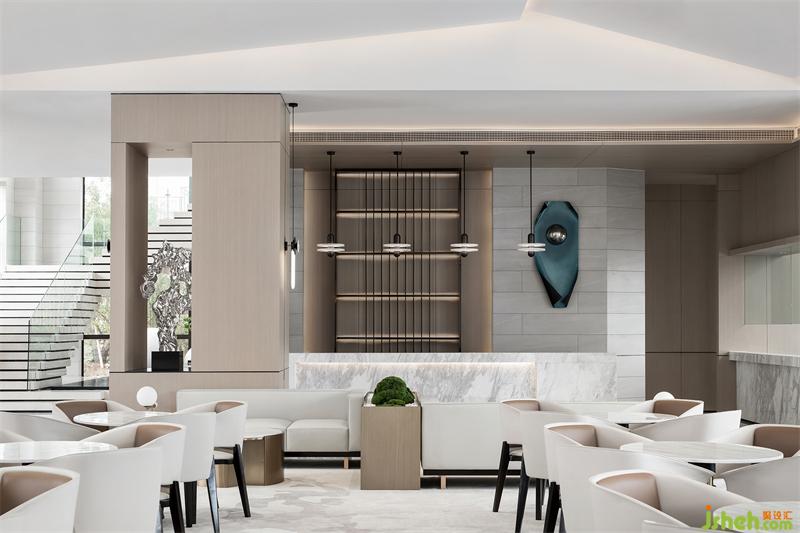 大塊面的錯(cuò)落斜頂天花將不平衡動(dòng)態(tài)觀感極致呈現(xiàn), 以現(xiàn)代方式重構(gòu)傳統(tǒng)秩序美, 光線提煉天花塊面輪廓南寧售樓處設(shè)計(jì),將傳統(tǒng)的意向表現(xiàn)得深入細(xì)膩。洽談區(qū)的休閑椅簡潔輕巧,和天花相得益彰。
