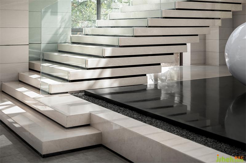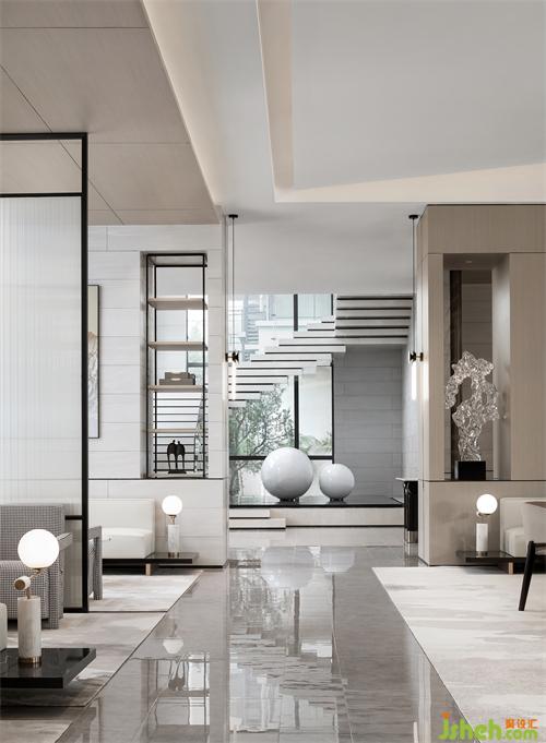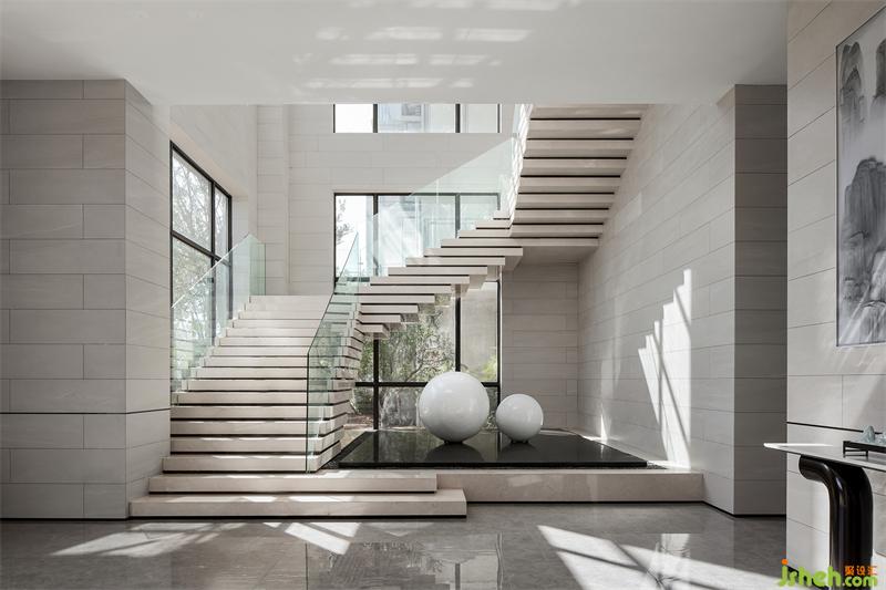 踏步錯落有致,層疊而上,現(xiàn)代而又藝術(shù)張力。回歸東方的人文情懷,營造一方詩境,仿似書畫飄逸出古香,靜心揣摩淺色清韻之中的閑逸,讓傳統(tǒng)的余韻浸透現(xiàn)代生活。