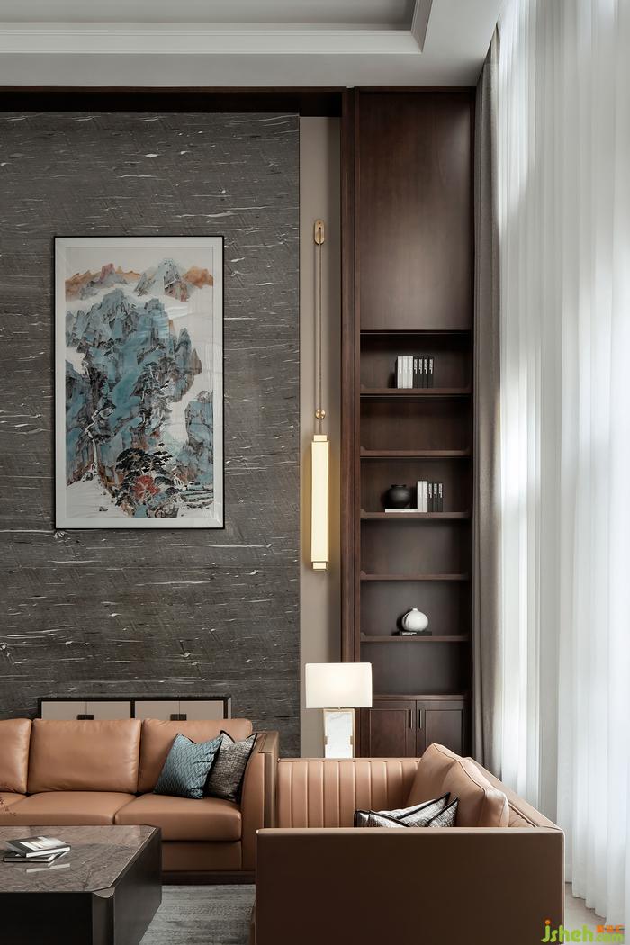 工整、利落的線條有著與生俱來的秩序感,圓形裝飾畫點綴其中,別墅裝飾營造出幾何藝術(shù)感,粗曠的畫質(zhì)面帶著寫意的山水脈理,不經(jīng)意間傳達(dá)出東方大宅的意境之美。