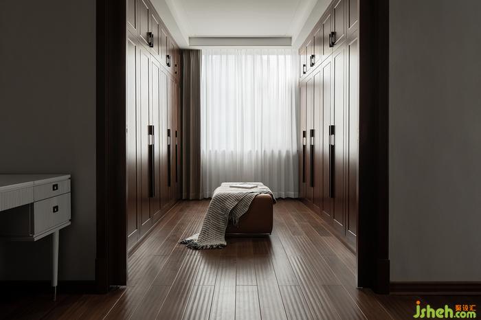 文雅的風情和現代東方調性彌漫整個主臥空間,以自然意象呈現超越物表的意境,用藝術建構空間的生活意趣。溫潤的木色讓空間更為沉穩(wěn)安逸,陽光灑下自然的光線,幸福感在空間中蔓延。