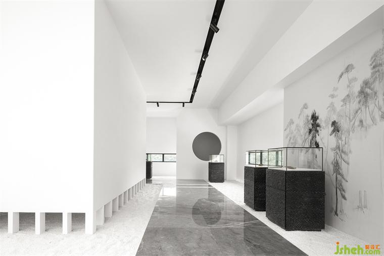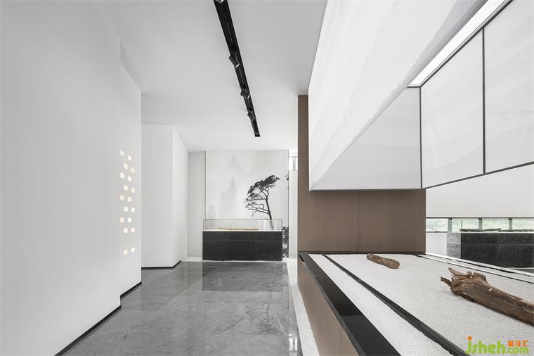 橫向延展的木質(zhì)線條,主導(dǎo)空間走向,為每一停駐的景致增添決定性指引。柔和而深淺錯(cuò)落的自然色彩,在白、黑、灰的映襯中更顯通透,時(shí)光是宇宙最神秘的工匠,在此天賜靈物上,一筆一畫雕刻出歲月走過的印跡,博物館設(shè)計(jì)傷痛,愈合,沉寂,繁盛,皆展露無疑,在圍合意境的維度里,為人、器物、光影、線條、色彩注入契合氣韻,共同恪守著神秘的平衡法則。