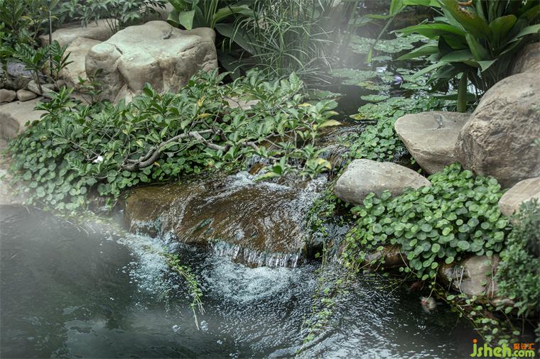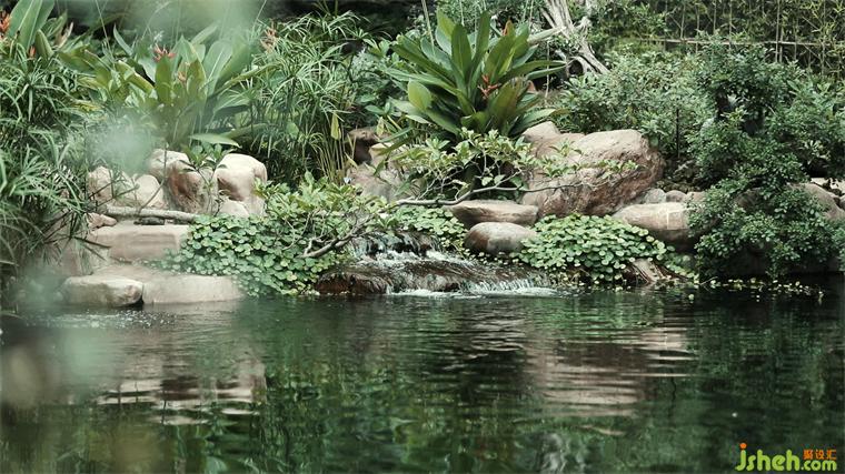 微風(fēng)吹拂,文竹、黑松、棕櫚樹(shù)在日光的照耀下光影涌動(dòng),碧綠水波泛起陣陣漣漪。