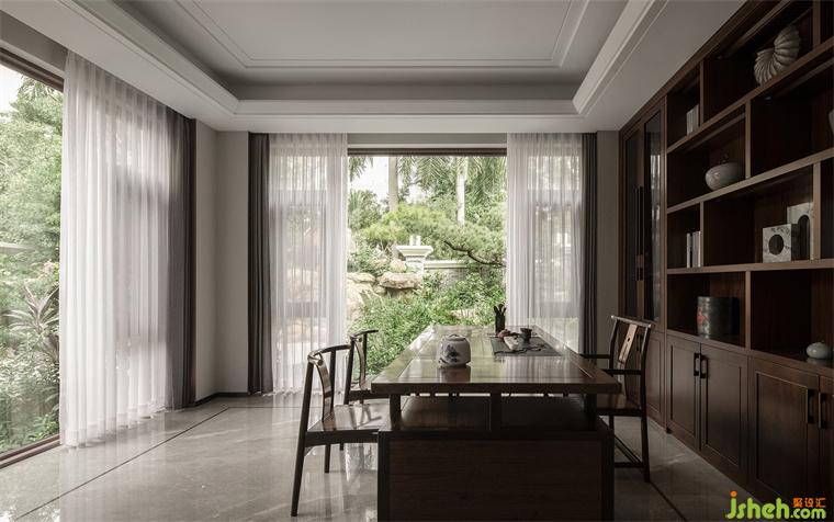 由外而內(nèi)的東方情懷延綿不斷,行至偏安一隅的茶室,柔和的光線,溫潤的木質(zhì),簡樸與高雅兼容于一境,老物件的和諧融入讓這種氛圍更加沉淀。在這里,居者可與三兩好友,花園別墅裝修設計沖泡一壺熱茶,靜撫手中木器的質(zhì)感,細品悠然茶香,于此覓得一絲清逸風雅。