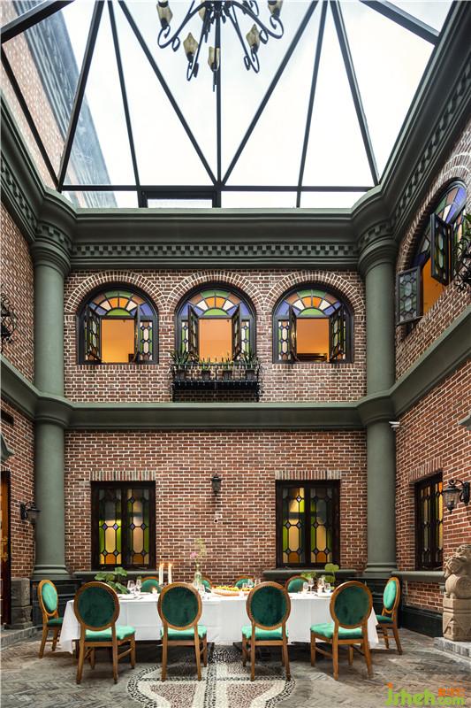 Bar locates above the garden, while its outdoor zone provides excellent view. The shape of pyramid integrates perfectly with red bricks, which becomes the favorite scene of the designer.