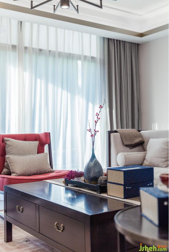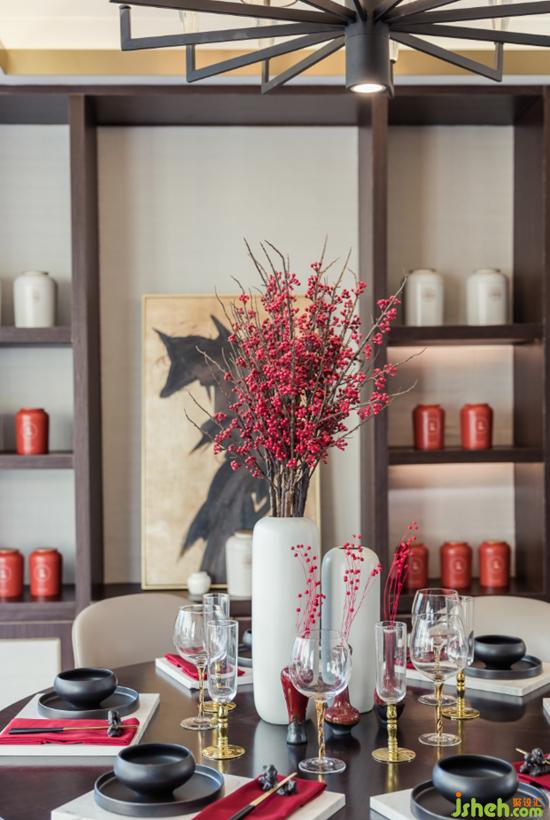 客廳我們打造了一個(gè)寫意的空間,背景墻的寒梅大雁與茶幾藍(lán)色弧形花瓶上插的南天竹是這里的聚氣之筆。深圳室內(nèi)設(shè)計(jì)師