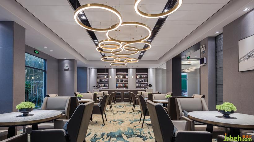 洽談區(qū)承一處閑暇,以中式的神韻為底,融現(xiàn)代幾何圖形為“翼”大小不一,飛懸半空。