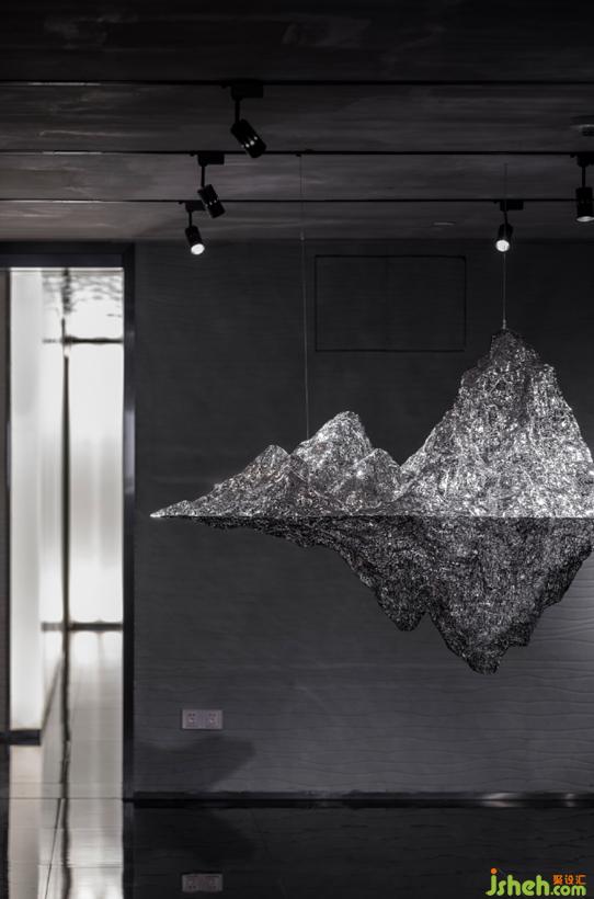 遠(yuǎn)處鄭路老師的一件山型雕塑作為端景,且行且看繞著這座山型雕塑,我們才能進(jìn)入豁然開朗的公共洽談區(qū)。