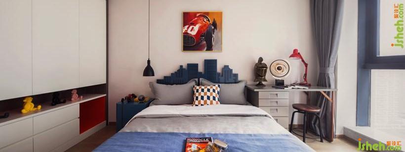 兒童房我們以藍(lán)色作為主色調(diào),局部以橙黃軟飾作為點(diǎn)綴,豐富多變的元素,豐富了空間的同時(shí)也給了孩子想象的空間。