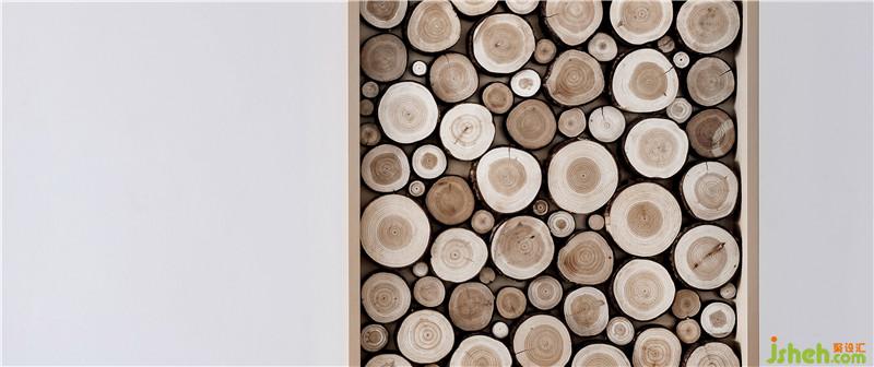 梧桐原木片陣列的裝飾墻面