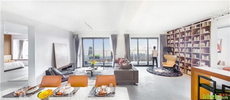整個空間原本是兩間二室一廳大套房,墻體被打通后,自然光被大面積的引入到室內(nèi),同時外景連成一氣,室內(nèi)則更加的通透明朗。