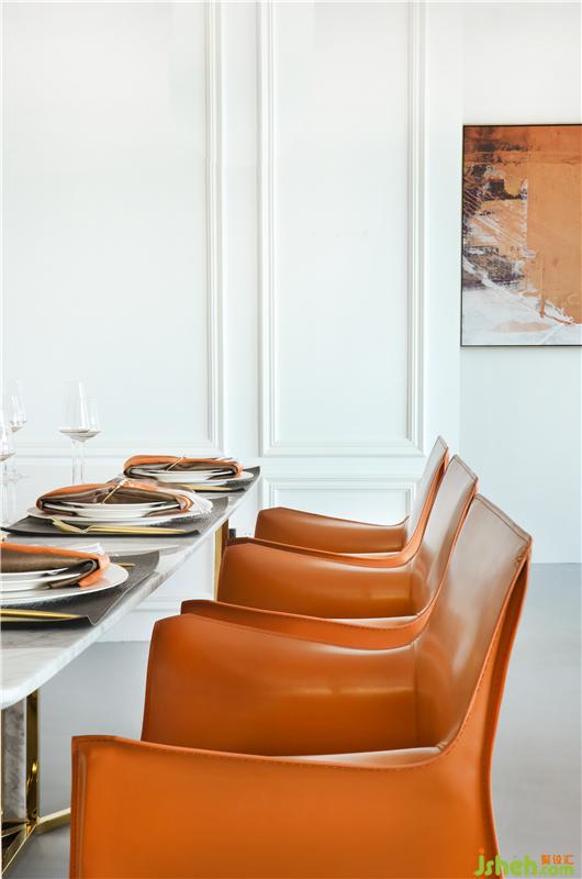 愛馬仕橙色一直走在時尚的前沿,與高反光皮革和玻璃金屬等材質(zhì)的結(jié)合讓其相得益彰,為空間注入了活力。室內(nèi)設(shè)計師