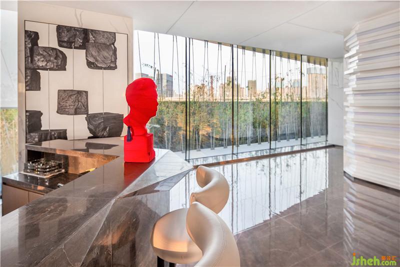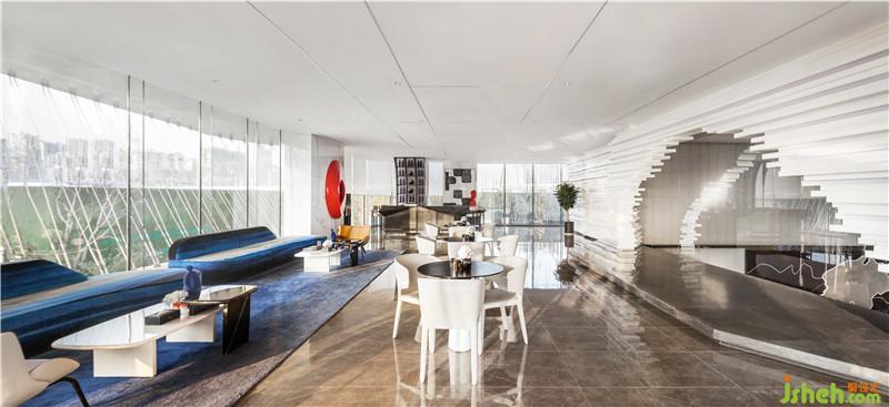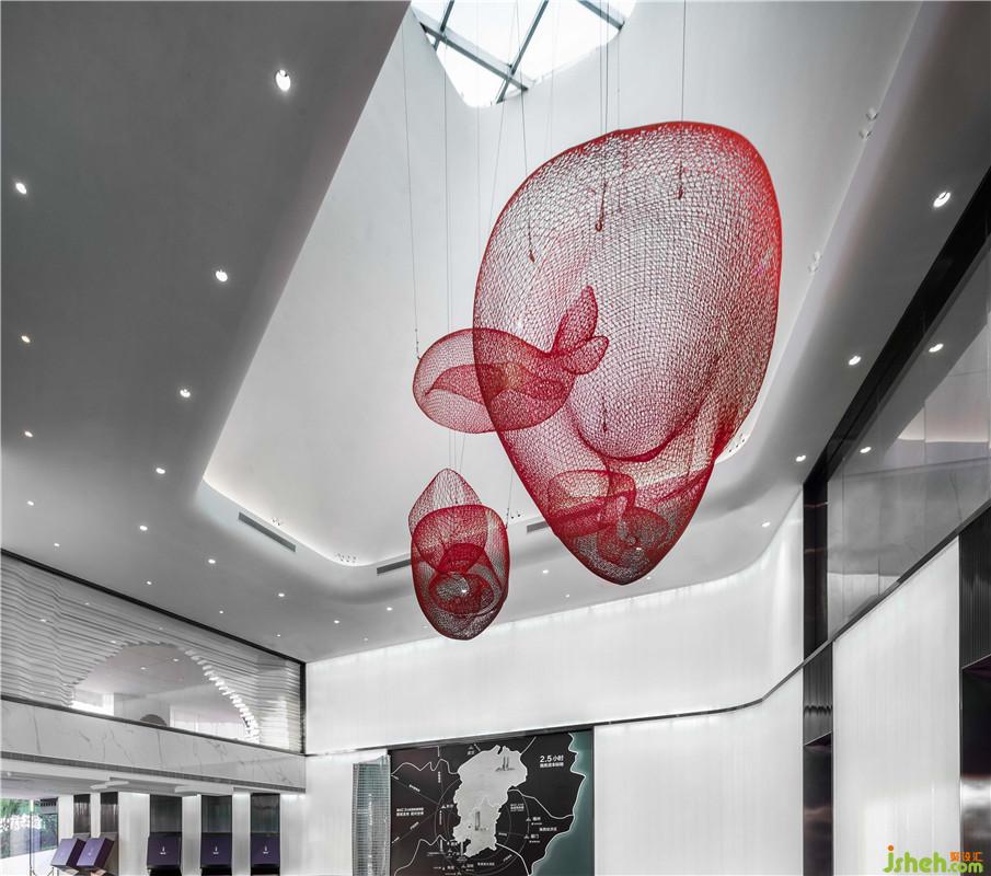 The sea is often magnificent and turbulent, but you are always fascinated by its original calm and quiet; and the whale is a symbol of freedom, pursuit, and uniqueness, symbolizing the endless vitality. The sculpted whale hangs on the whole of the building, hoping to leap over the sea, creating an empty and peaceful space atmosphere.
