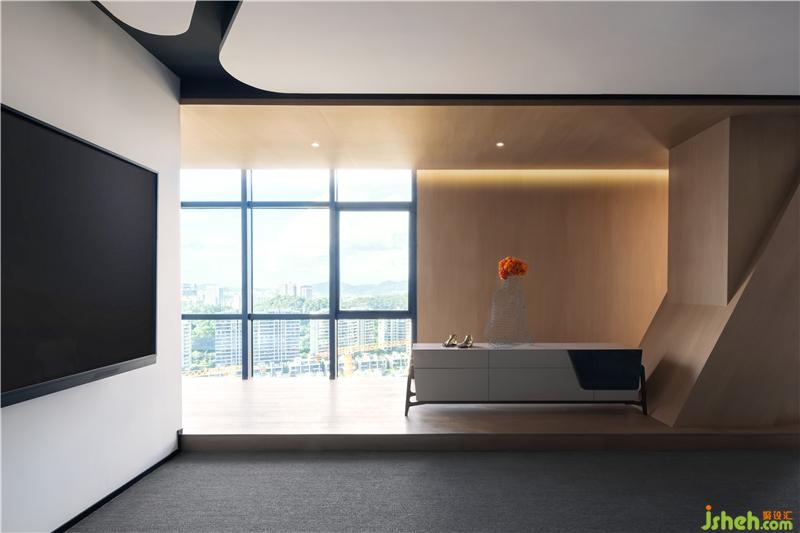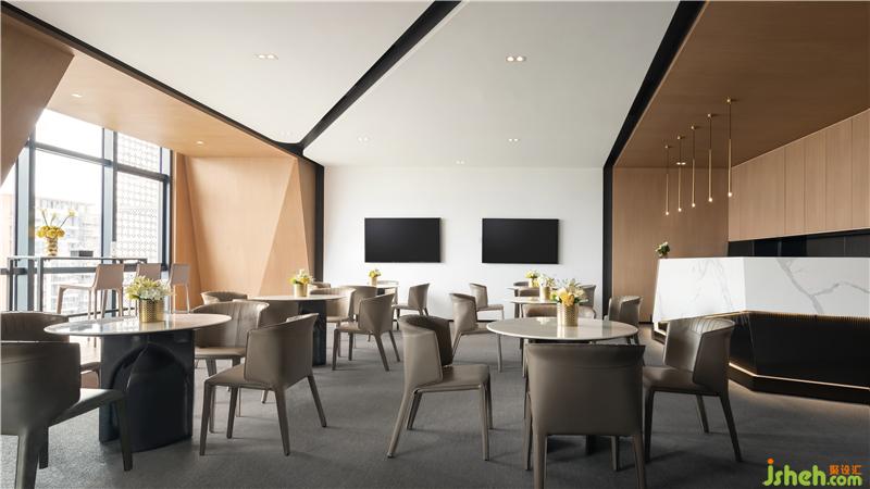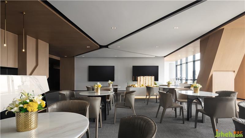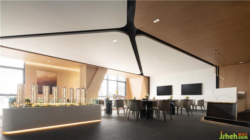 洽談區(qū),意在去售樓處化,用當代藝術(shù)重新定義空間,打造專屬的都市會客廳。頂部獨特的設(shè)計減輕空間縱向厚重感,延伸效果由此產(chǎn)生。木質(zhì)所帶來的輕盈和流暢的線條隨處可見,到訪者逐光而行,感受設(shè)計的智慧。這便是我們給你最好的禮物。