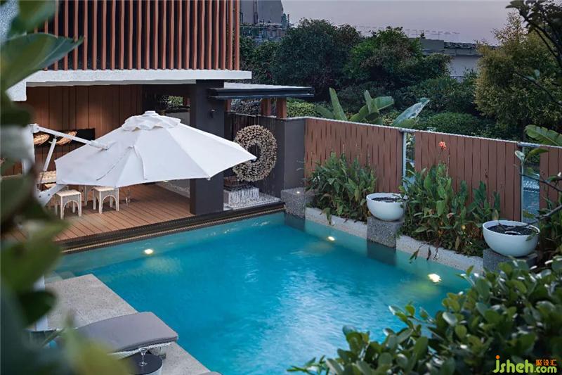 中國禮序講究幾進幾出,我們不希望所有人就像進菜園門一樣隨隨便便就進來,而是要通過這樣的一個儀式感的狀態(tài),從側面來到我們主空間。我們還設計了一個很大的超尺度的這樣的一個泳池,不同于別墅型的泳池,我們把絕大多數空間留給泳池以及可以做派對、餐飲的地方。原本大的尺度減小了,小的尺度放大了,打造出別樣的生活方式。這是比較大的驚喜。