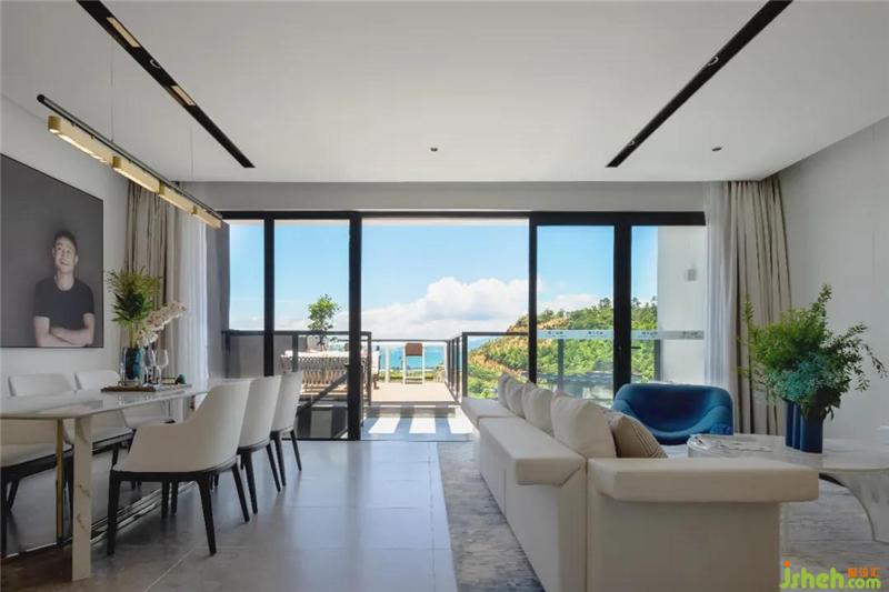 天真爛漫,童趣橫生。于藍白之中,大海作伴。置身于海洋童話城堡夢境之中,攬鯨入夢,擁星成眠。大片落地窗,引領著室內(nèi)的光線,將無敵的海景納入房中。