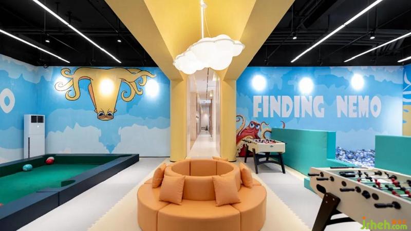 當(dāng)小孩在泡泡池玩耍疲乏了,就地一躺,身旁是淺藍(lán)的海水,小丑魚與海龜在其中滑動(dòng),頭頂則是祥云朵朵,仿佛自己也置身其中,留下更多夢(mèng)幻遐想。