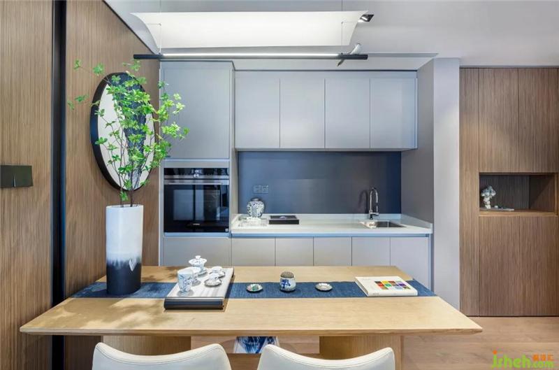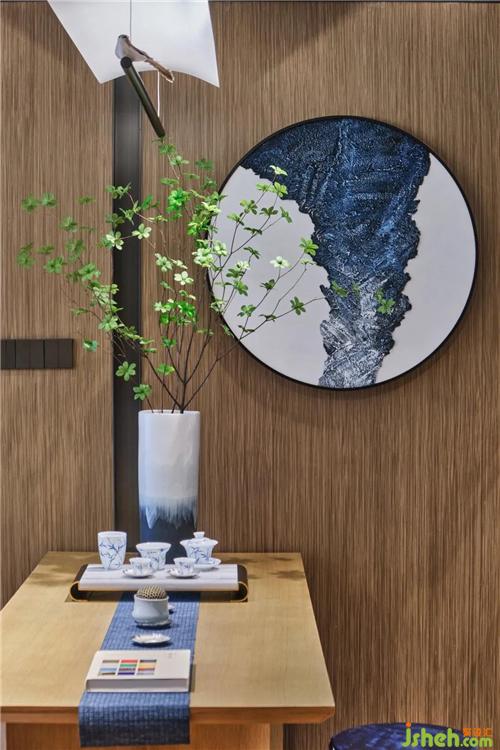 將花青色作為主色調(diào),這是一種文靜優(yōu)雅的深藍(lán)色,讓心靈重歸寧靜致遠(yuǎn),用茶色書寫四季。新中式的設(shè)計(jì)主打無形之境,打造超越日常的寫意東方生活空間,讓人沉浸于小隱生活,回歸生活本質(zhì),靜享生活恬靜淡然之美。