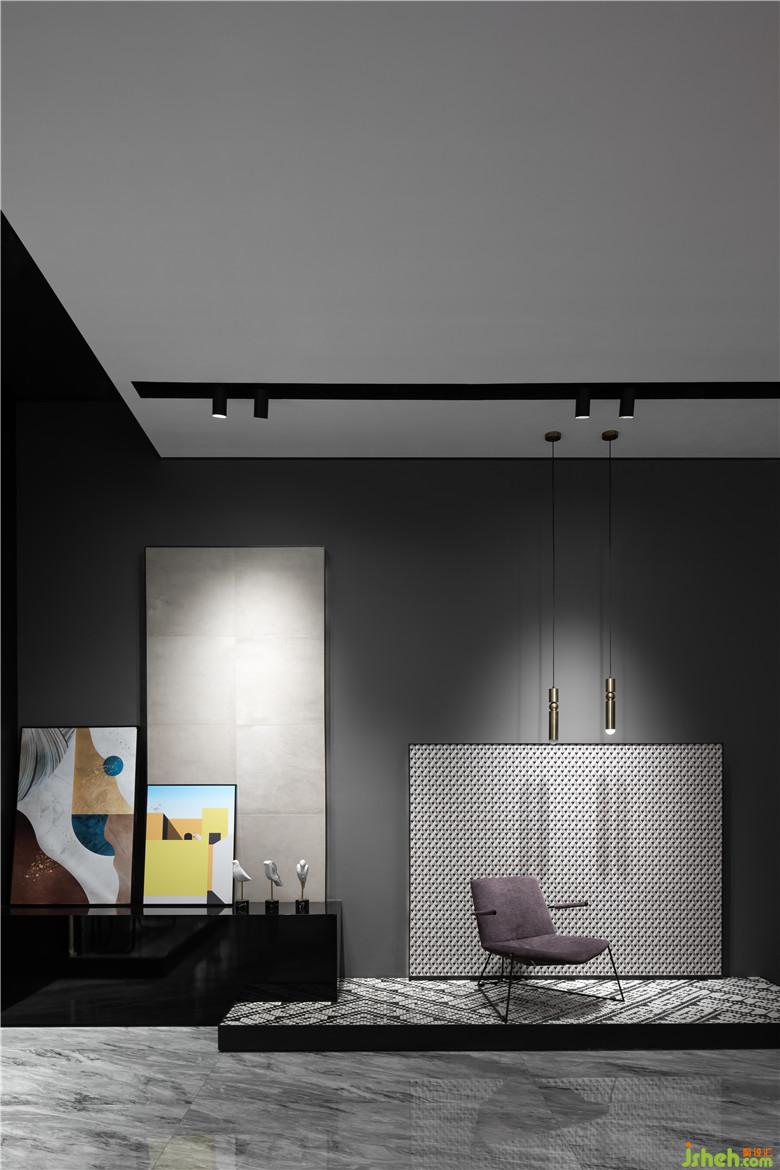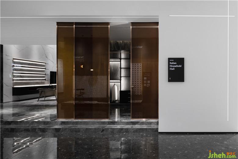 選材區(qū)以產(chǎn)品展示為核心,通過(guò)疏密有致的幾何體塊序列進(jìn)行敘事。非對(duì)稱空間是在空間維度上尋找平衡點(diǎn),是相對(duì)復(fù)雜且豐富的,空間體量和疏密有致的幾何體塊之間的關(guān)系形成了空間獨(dú)有的藝術(shù)形態(tài),在細(xì)節(jié)處理上,對(duì)材料的對(duì)縫,收邊,比例都經(jīng)過(guò)細(xì)致的推敲和設(shè)計(jì)和精磨精切。追求品質(zhì),而這就是建筑對(duì)使用者體現(xiàn)出的尊重感。黃銅等金屬材質(zhì)低調(diào)地出現(xiàn)在空間中,使得室內(nèi)的寧?kù)o氛圍多了些許豐富的變化。而木材與石材的運(yùn)用,亦使空間多了些溫潤(rùn)及細(xì)致的表達(dá)。