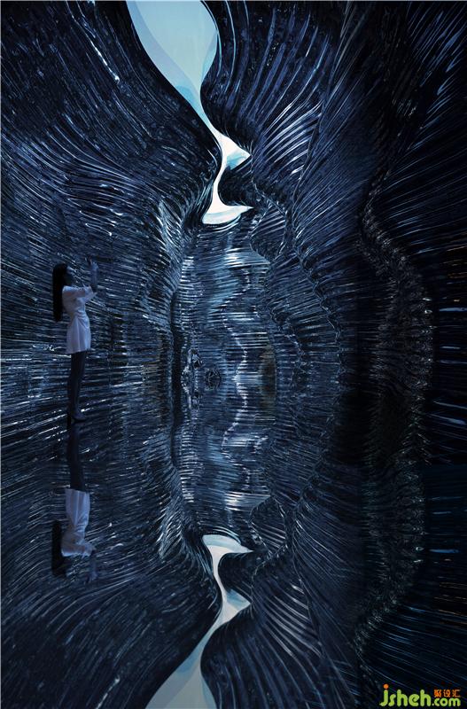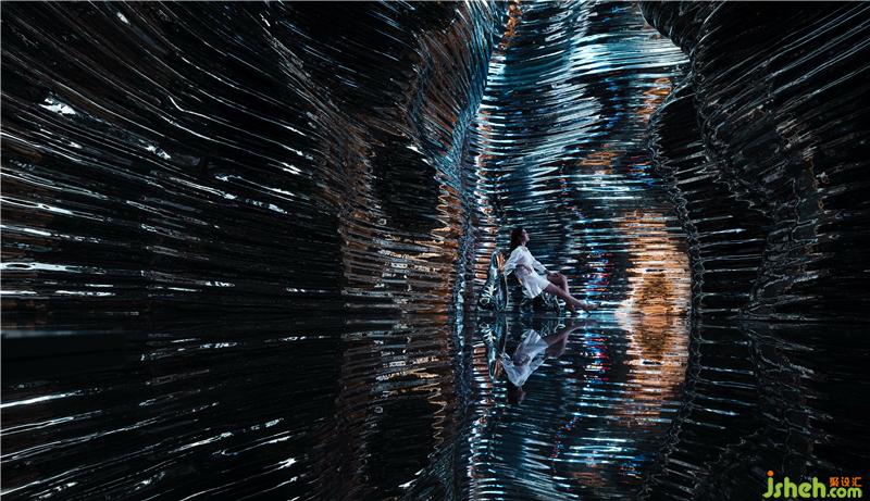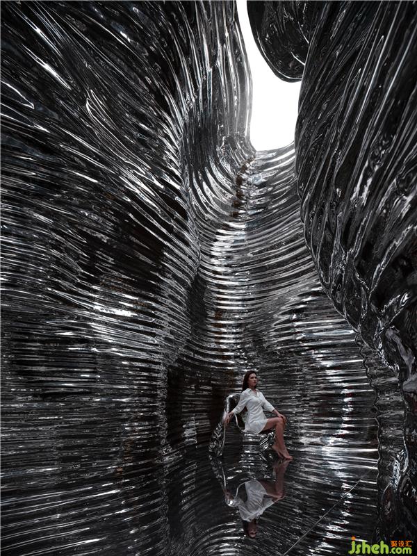 以這樣的方式展開空間敘事有兩層涵義:其一是表達(dá)對大自然的致敬,金屬是大自然給予人類的禮物,人們從礦石里提取了各種金屬佛山展廳設(shè)計,制造出鐵器和銅器,正式開啟了人類文明的窗口,設(shè)計師讓金屬回歸到大自然的原始狀態(tài),從本質(zhì)上講是一種返璞歸真!其二是空間所帶來的沉浸式體驗,峽谷兩邊的墻壁以自由曲面蜿蜒盤旋,巖壁上的溝塹層層疊疊,彷佛經(jīng)歷數(shù)千年歲月的洗禮。光影隨著時間而推移,如夢如幻,仿佛置身仙境,漫步其中,仰望星河,眼前閃過宇宙文明的軌跡,也驚嘆于大自然的鬼斧神工,人類的精湛工藝和自然的奇妙變化相輔相生!自然賦予人類的創(chuàng)造性,人類用創(chuàng)造性的思維去回饋自然!