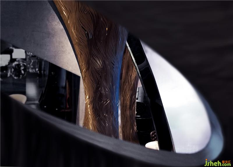 這種詩意表達(dá)除了自然主義的視覺美感更增加了人文主義的浪漫情懷,一方面凸顯金屬獨(dú)特的鍛造工藝,同時在視覺上呈現(xiàn)出材質(zhì)的獨(dú)特自然質(zhì)感佛山展廳設(shè)計(jì),另一方面還賦予了金屬鍛造過程中的另一種物理狀態(tài),鐵礦石經(jīng)過高溫熔化后自然流淌!動和靜相存,剛和柔并濟(jì)!這也是自然主義的魅力所在。