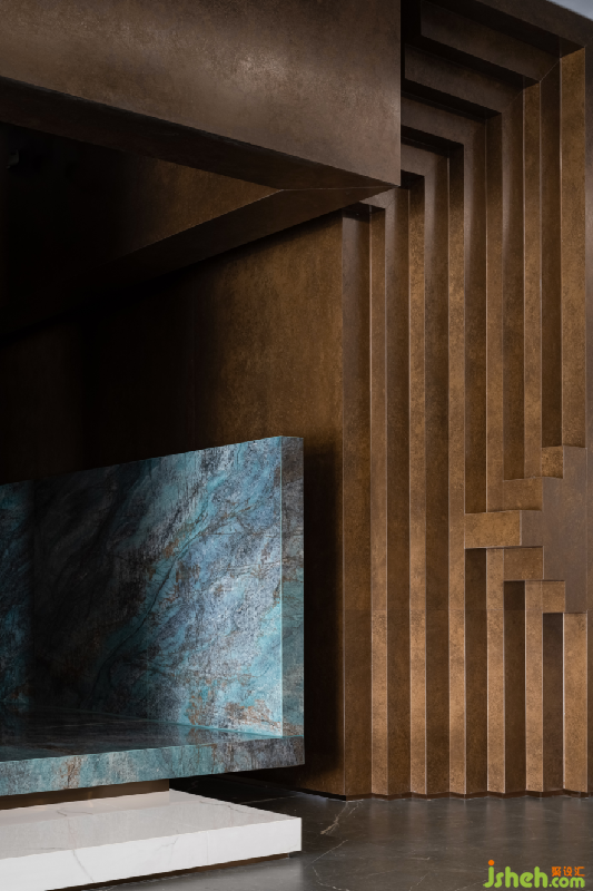 在細(xì)節(jié)處理上,對(duì)材料的對(duì)縫,收邊,比例都經(jīng)過(guò)細(xì)致的推敲,對(duì)加工細(xì)節(jié)的極致追求,體現(xiàn)出對(duì)使用者的尊重感。將金屬黃銅材質(zhì)低調(diào)地搭配在空間中,使得室內(nèi)的寧?kù)o氛