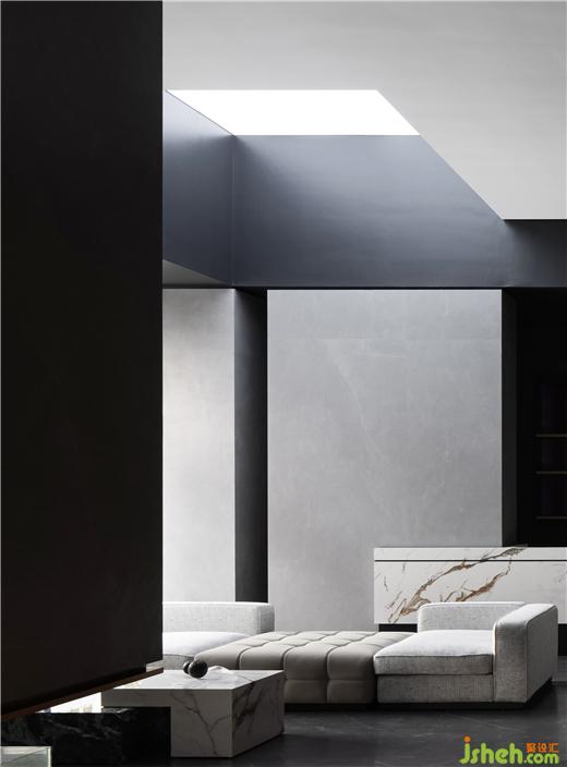 巖板展廳設(shè)計通過建筑體塊的形態(tài)、空間解構(gòu)的設(shè)計、幾何分割的手法以及場景體驗的創(chuàng)造,可以展現(xiàn)對產(chǎn)品的認知,并構(gòu)建起產(chǎn)品美學(xué)與空間應(yīng)用相結(jié)合的品牌理念。傳統(tǒng)的展廳已經(jīng)不再是單一的選材場所,而是融合了場景體驗、藝術(shù)欣賞和社交接待等多重功能。