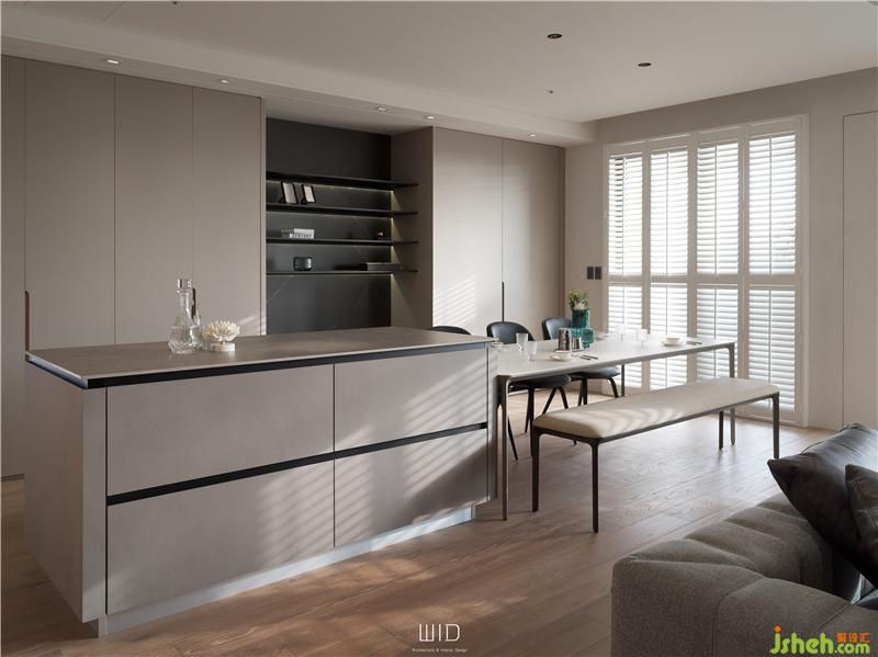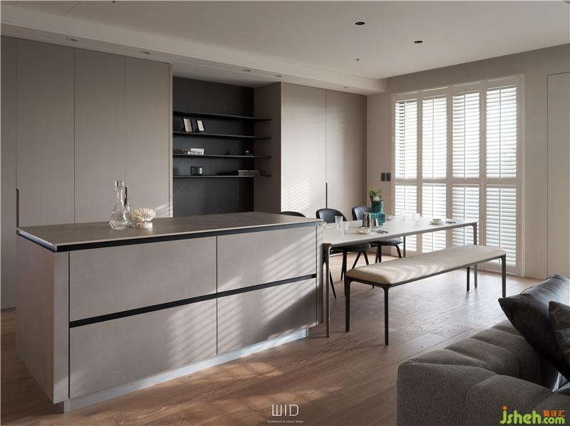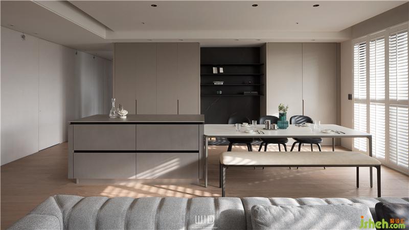 「Original Gallery」為林口商業(yè)核心區(qū)域的高樓層住宅空間,大面寬島嶼陽臺,坐著喝喝茶,曬曬太陽,享受很寫意的人生。考慮使用者的生活型態(tài)與空間需求,在理念上強調(diào)空間與大地、自然、五感的串聯(lián)。設(shè)計上以暖灰系為主調(diào),比白色更增添了趣味,比彩色更優(yōu)雅耐看,巧妙糅合人文與生活藝術(shù)。裝修公司