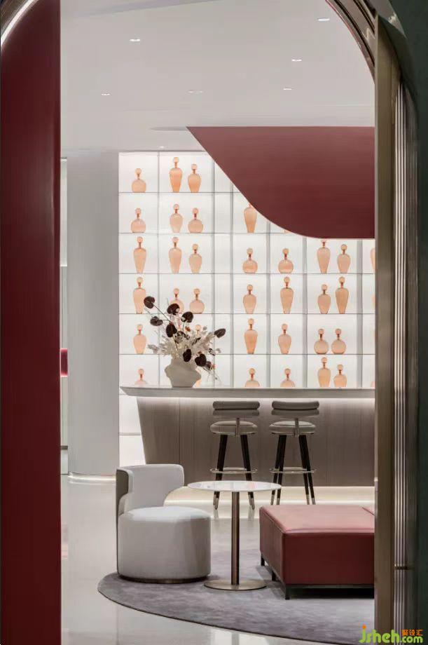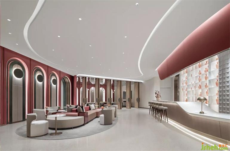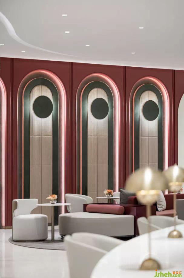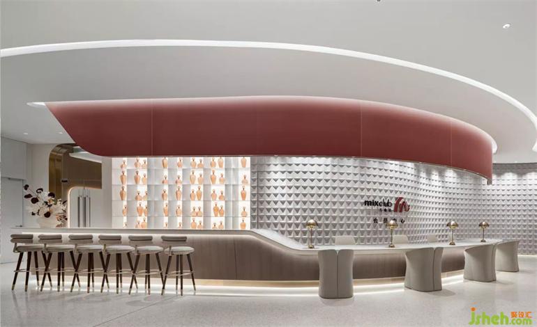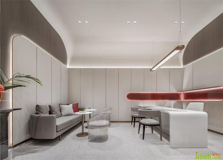 天津,因水而行的城市。水,讓城市充滿靈性,如同流動(dòng)水系般的造型天花在大面積乳白色的襯托下加入金屬光澤,如繁星點(diǎn)點(diǎn)照亮整個(gè)空間。會(huì)員中心設(shè)計(jì)整體色調(diào)以淡雅灰與優(yōu)雅紅為主調(diào),柔和的弧形曲線,將動(dòng)態(tài)流動(dòng)感展現(xiàn),金屬的細(xì)節(jié)點(diǎn)綴,烘托流光溢彩的氛圍。