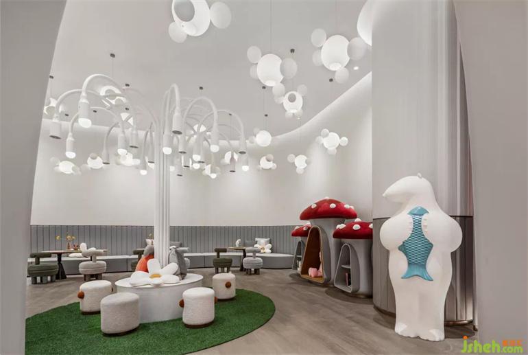 藝術(shù)賦予空間靈魂。充滿趣味的氣泡元素營(yíng)造一個(gè)互動(dòng)感極強(qiáng)的兒童烏托邦樂(lè)園。會(huì)員中心設(shè)計(jì)錯(cuò)落有致的米奇泡泡燈具構(gòu)筑一座童話城堡,互動(dòng)藝術(shù)裝置大樹(shù)成為空間的焦點(diǎn),每個(gè)樹(shù)干都會(huì)緩慢吐出煙霧泡泡,隨著重力影響緩慢落下隨即又幻化成迷霧,趣味十足!