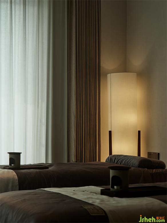 Spa區(qū)和客房采用顏色較深的顏色搭配和光影效果,為在此休息的客人提供一個(gè)舒適的養(yǎng)生場(chǎng)所。藍(lán)城花海芳香小鎮(zhèn)會(huì)所設(shè)計(jì)從芳香展示區(qū)整體來(lái)看,設(shè)計(jì)都嘗試向外界傳達(dá)一種避世、度假、花園、愜意的生活理念。