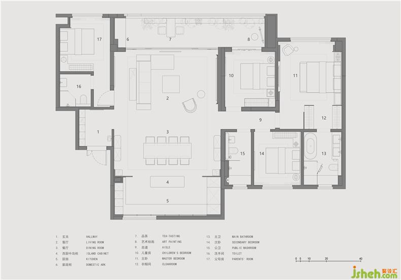 在如此氤氳著東方雅韻和開闔氣象的端方空間中徜徉,最終我們的視線再次回到這一室層次豐富、肌理各異的“紅暈”當(dāng)中?!熬G艷閑且靜,紅衣淺復(fù)深”,說的是牡丹紅;“猶余雪霜態(tài),未肯十分紅”,說的是梅紅;“淡淡微紅色不深,依依偏得似春心”,說的是海棠紅……東方極愛這一抹紅,也最懂這一抹紅,當(dāng)這些氣質(zhì)各異的“紅”交織在一起,襯托在沉郁幽雅的背景中獨(dú)綻芳華,樣板房設(shè)計就是那獨(dú)屬東方的別樣風(fēng)情,也是這一眼難忘的經(jīng)典之家。