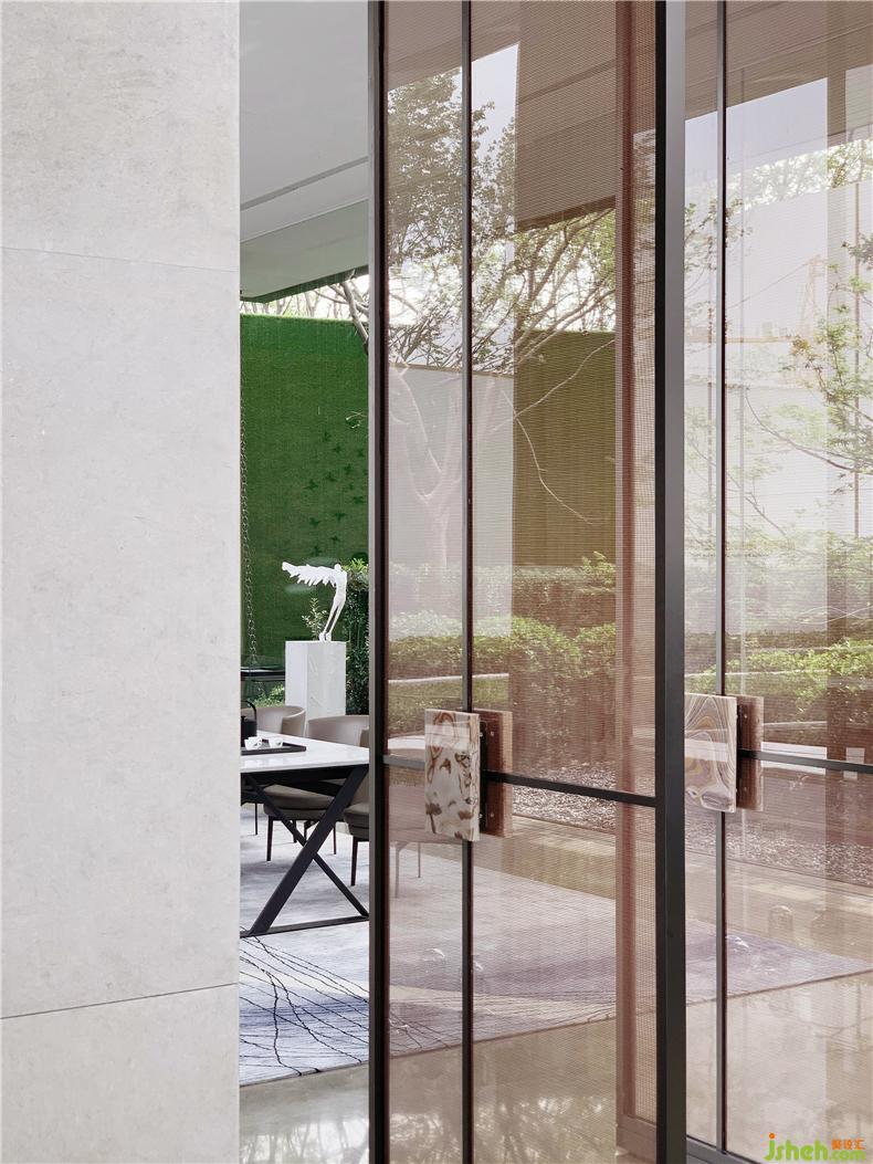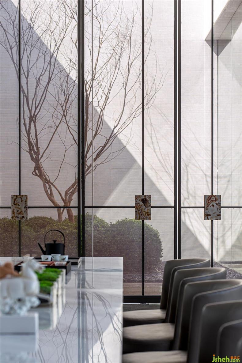 室內(nèi)的空間并不是孤立的,細(xì)節(jié)上的升華柔和了建筑框架的筆直線條,大手筆的開窗取景又與景觀串聯(lián)融合。