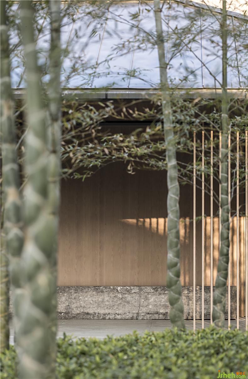 綠蔭竹林做舞臺,空間點、線、面為樂器,風(fēng)過竹林,天賴有音。順著幽靜閑適的小徑,一路捕捉若有若無的草葉馨香,光影交織,與這片翠綠相輔相成,由大片的竹林包圍,形成獨特玄妙的神秘感。萬科竹生活館,便位于這曲徑幽深處。