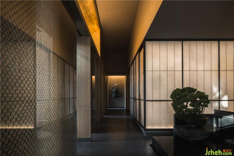 在室內(nèi)空間的設(shè)計(jì)理念中,設(shè)計(jì)師摒棄一般燒肉店張揚(yáng)、熱鬧的排面,將東方侘寂美學(xué)與傳統(tǒng)日本和室相結(jié)合,營造遺世獨(dú)立的尊貴氣質(zhì),又不乏溫馨如怡之感。