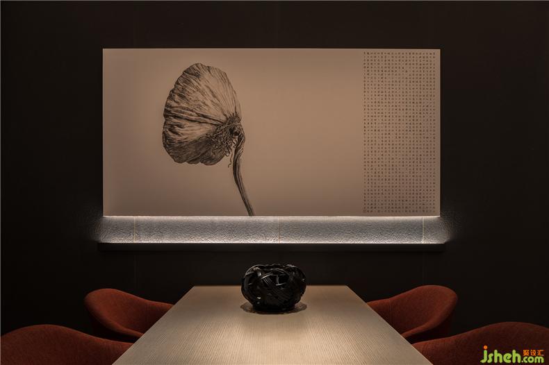 尋求遁世隱匿之境的體驗感,除了禪意的水景盆栽,原石雕塑、極簡水墨掛畫,沒有任何裝飾或藝術擺件,隔景,借景,框景極致的意象點到為止。