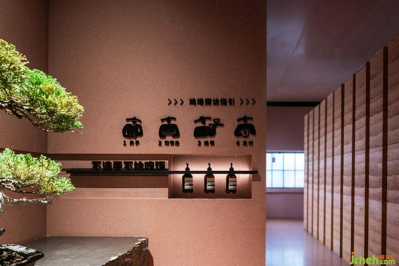 源自于土地的色彩,提煉為低飽和度的用色方案,作用于土、木、石、棉、麻等天然材質(zhì)的界面,與呼應(yīng)生態(tài)、有機(jī)的品牌核心一拍即合。整體的色彩以土壤紅為主,并且穿插有標(biāo)志性的老鄉(xiāng)雞符號元素,核心設(shè)計靈感通過琳瑯滿目的大字報文字排列,營造熱鬧非凡的碎片化現(xiàn)代空間。
