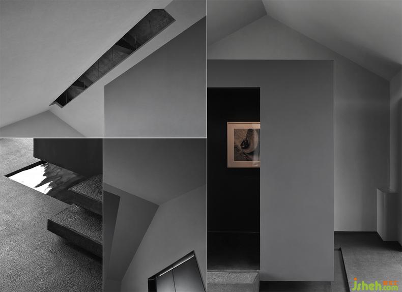 位于“院落”上層:建筑與建筑之間,以造園的手法,組織布局的“空”。在植被包裹下,山石被切割成各異形狀,構(gòu)成曲折的路徑。如同園林中的亭與樓,互為對(duì)映。