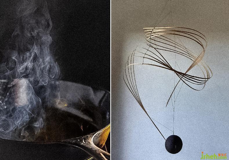 △Aroma(懸掛裝置):LaurentMartin‘Lo’利用五條長細(xì)的竹子勾畫出煙霧中美麗的運動流與圓形螺旋在中間煙霧的形狀。靈感來自煮菜時所產(chǎn)生的白色煙霧,寓意佳肴香氣四溢。