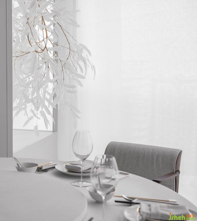 《莊子》曰“瞻彼厥者,虛室生白”。古典美學(xué)與古代哲學(xué)交迭在空間視域下,形而上的韻致和簡白高古的意境生成。附著江南文化內(nèi)核的物象“雪”,賦形于通體留白的界面肌底和花藝形式的視覺聚焦,再有“枯荷疏影,一池寒水”的灰空間鋪墊意境,以并置組合的方式和濃縮的語言符號完成高逸古澹的場景藝術(shù)構(gòu)建。