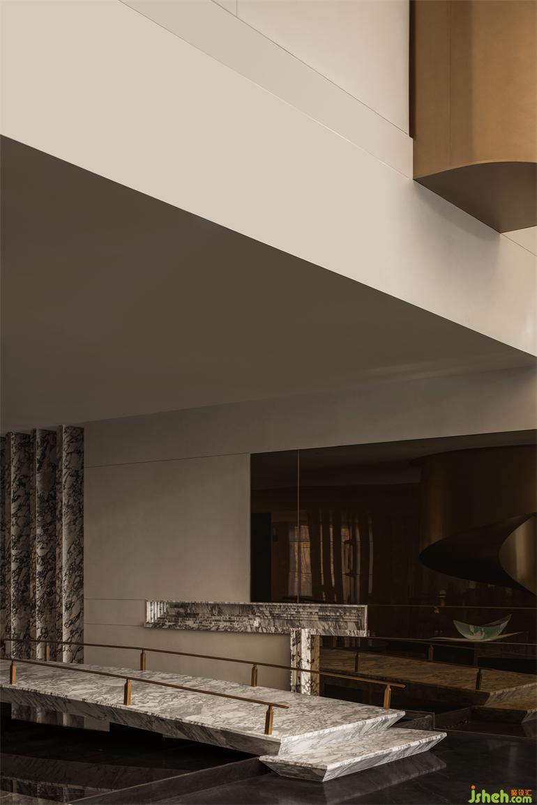 VIP室則更突出私享感,張力十足的藝術(shù)品在私密的空間中形成強大氣場,美學(xué)館設(shè)計如詩社般氤氳的空間氛圍自帶高階的沉靜。來自揚州的精致工藝在此被藝術(shù)化地呈現(xiàn):印刷雕版、絹布刺繡,還有詩歌的在地性都化作設(shè)計的詞匯,被寫進這首短詩里。