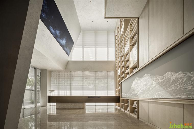 而作為整個(gè)作品的“序章”, 該項(xiàng)目的示范生活館設(shè)計(jì)也依此展開:從盤龍江取意,從《千里江山圖》取形,納自然入懷、融人文入境,再利用小型圖書館、精品咖啡品鑒角和互動(dòng)式手作區(qū)域等充滿強(qiáng)體驗(yàn)性和參與性的功能空間,營造出一種在自然包圍中的沉浸式、復(fù)合型、社交性的城市美學(xué)空間氛圍,并通過這種場(chǎng)景式、角色化的空間體驗(yàn),在人與空間、藝術(shù)、物件之間建立起自然而然的情感連接。