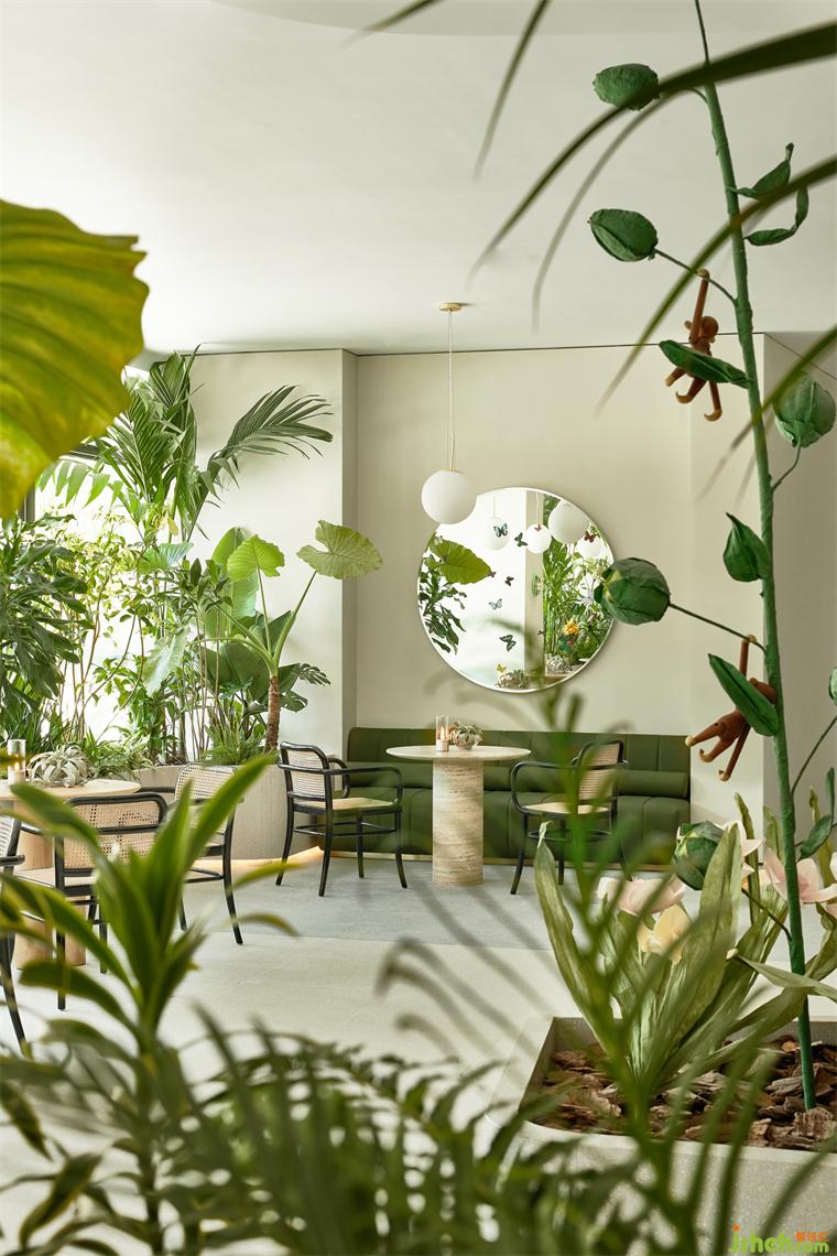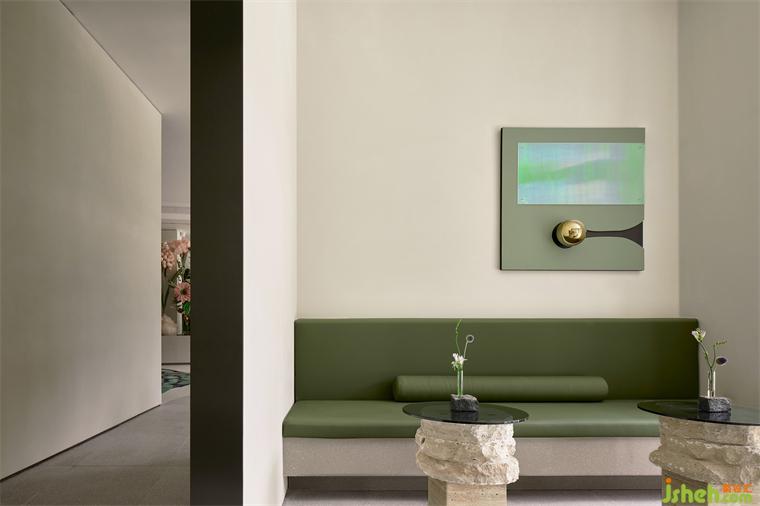碩大的藝術(shù)花束與色彩肌理感強(qiáng)烈的裝飾面圍合,室內(nèi)設(shè)計師為兒童們裝點(diǎn)了一個半開放式的自然藝術(shù)樂園,臨窗一面的自然閑適,通過色彩、裝飾的統(tǒng)一性,自然過渡為內(nèi)部兒童區(qū)的豐富、濃烈。