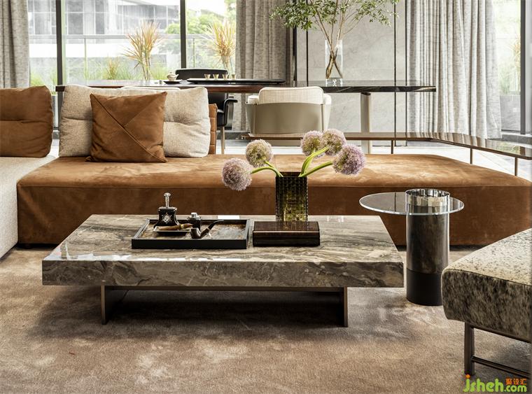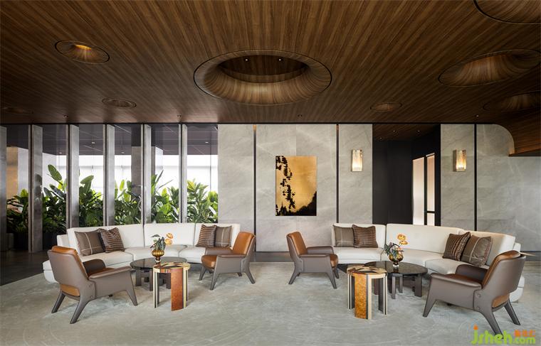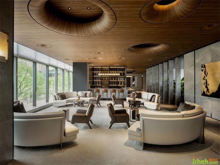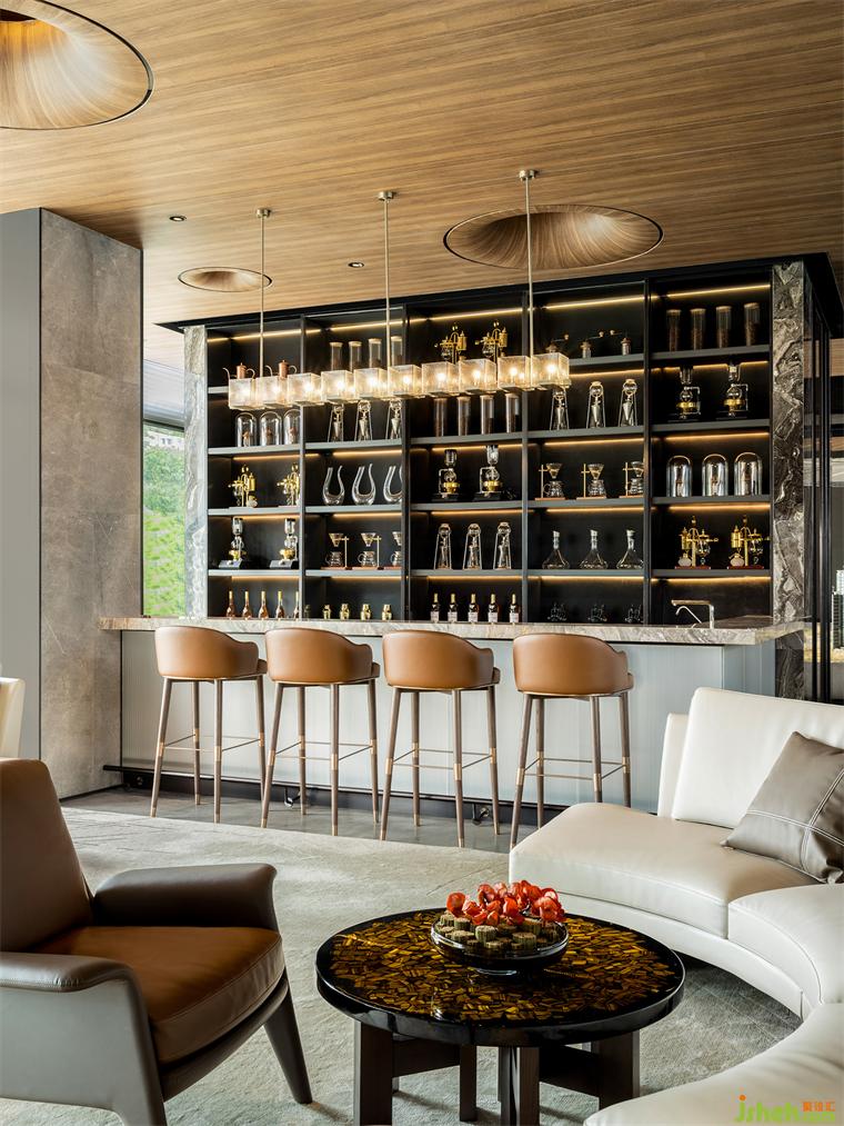 步入第三層,空間氛圍愈發(fā)靜謐尊貴,為VIP活動、私人宴會、商務會談和雪茄鑒賞等更為高階私密的活動提供完美舞臺。設計在此以一種低調優(yōu)雅的方式靜靜烘托品質感,茶幾、皮革抱枕、水晶器皿等細節(jié)于無聲處熨帖著高階生活方式的考究,裝修設計而石材、金屬、皮革等各種材質之間的碰撞也如同一曲當代頌歌,于時尚光影中折射著經典質感。