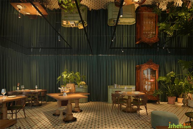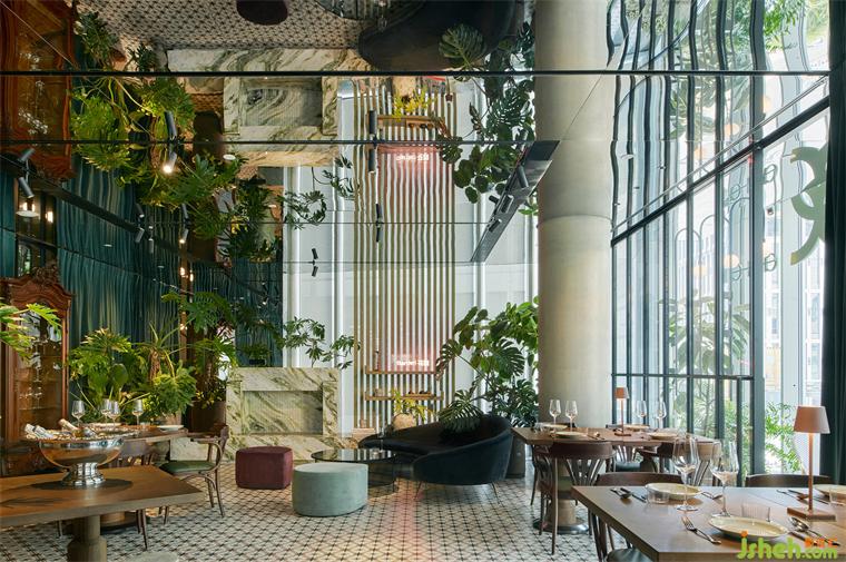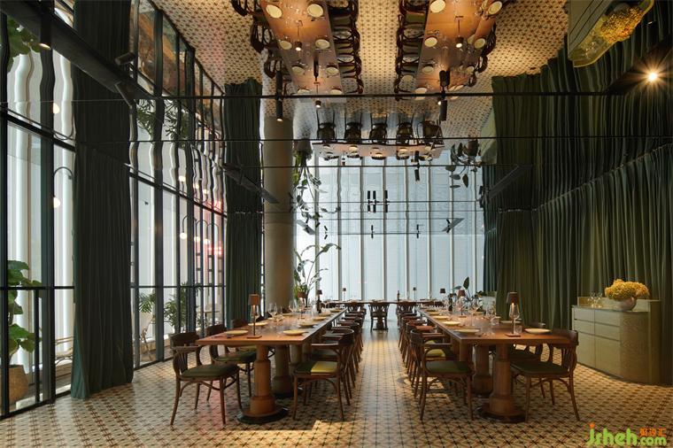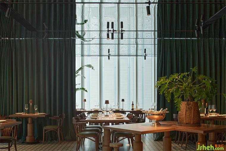 VIP宴會廳布滿不同類型的花藝和植物,它是一個由玻璃屏風圍合而成的通透盒子空間,餐廳設計內(nèi)部由電動窗簾來分隔和切換空間以滿足多種使用功能如就餐,宴會,發(fā)布會等等需求。