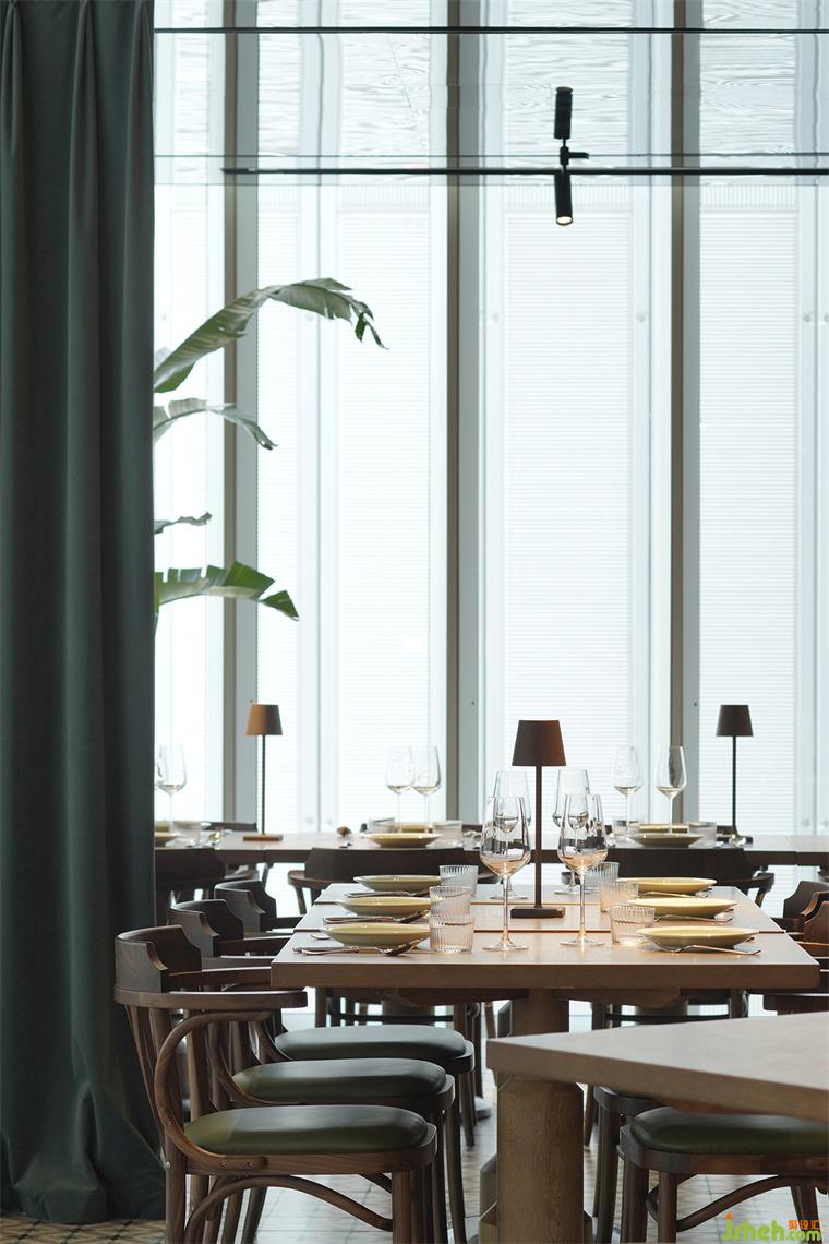 宴會廳北面靠幕墻隔出一個“陽臺”空間作為多功能廳附屬休閑空間,尺度適宜,餐廳設計是個靜靜發(fā)呆,三五好友相約下午茶的理想角落。